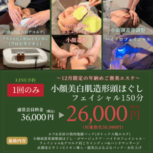 小顔美白肌造形頭ほぐしフェイシャル150分
