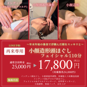 『小顔造形頭ほぐしフェイシャル110分 (会員価格 25,000円)』が